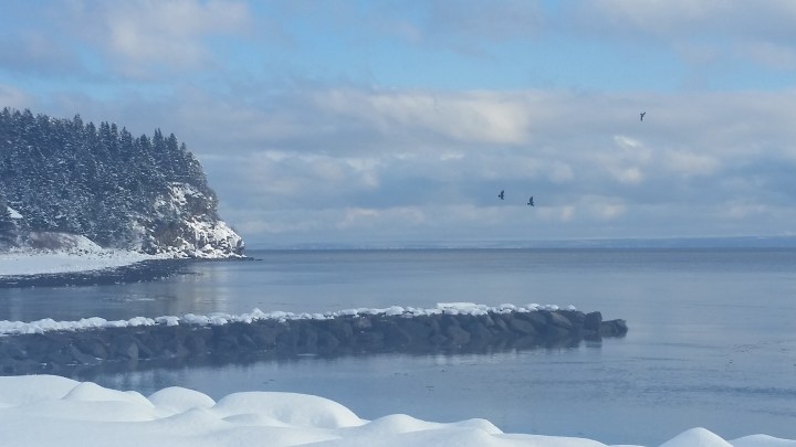Three birds on the coast, their destination freedom. Their wingtips warmed with flight. Their defiance of winter an inscrutable delight. I’ll take their inspiration and hurry home to huddle ’round my fire. My fingertips wrapped and warmed around a mug. My defiance of winter a thick pair of socks atop a woolen rug.