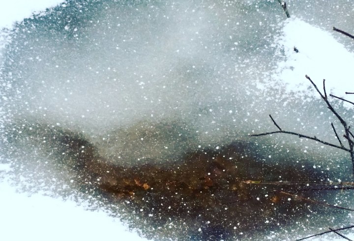 Snow in April is rarely welcome, but in my wanderings I found this puddle painted with a galaxy of stars. Maybe snow in April has magic, after all.