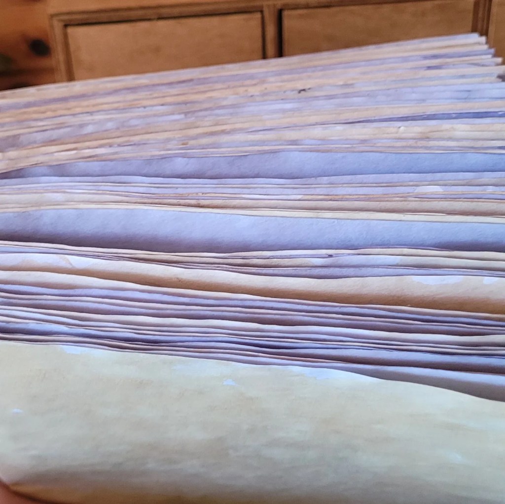 I’m still side questing in bookbinding, though I have extended myself into dying the paper I’m using in more fun and textured ways. Most of this is happening with different types of tea.