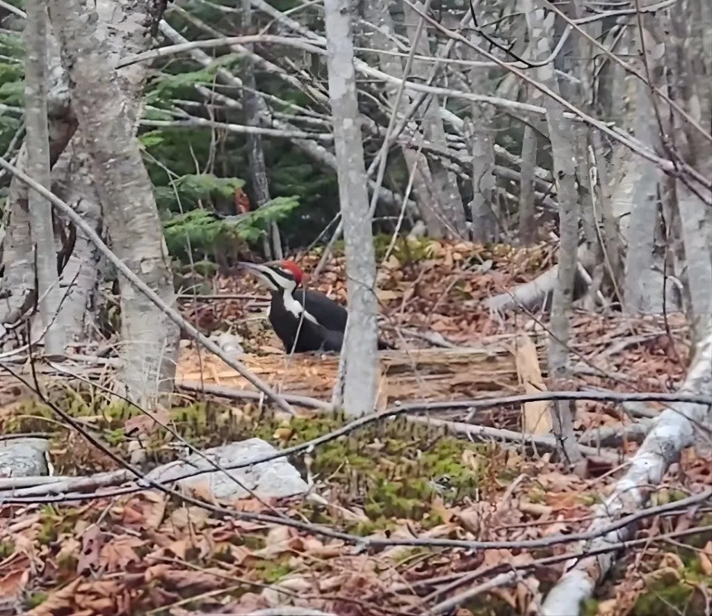or a few days, before the snow blanketed everything in winter, a pileated woodpecker kept returning to this well-rotten log on the woods across from where I usually park the truck. There’s nothing strange about seeing one of these birds, as they are often flitting in the treetops, but I’d never seen them on the ground before and I was struck by their size. I thought they were robin-sized, but no, this one was closer to a pheasant’s size.