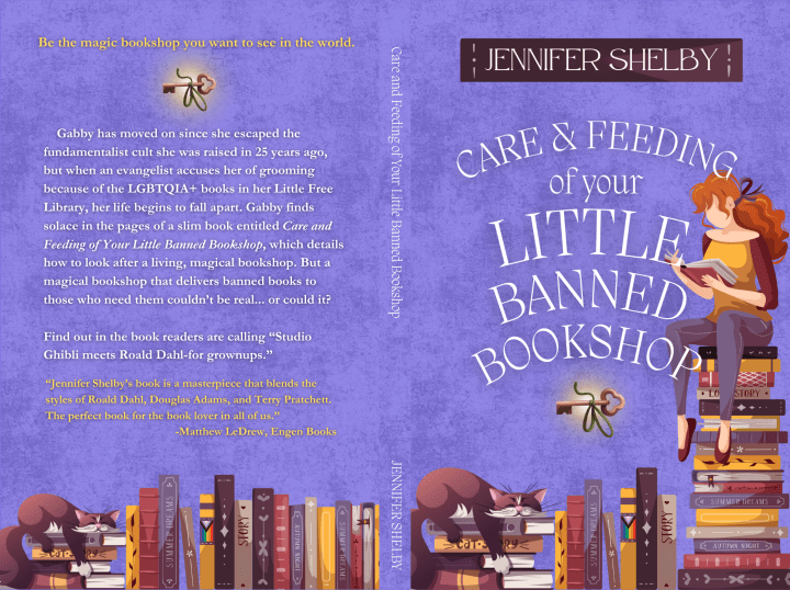Gabby has moved on since she escaped the fundamentalist cult she was raised in 25 years ago, but when an evangelist accuses her of grooming because of the LGBTQIA+ books in her Little Free Library, her life begins to fall apart. Gabby finds solace in the pages of a slim book entitled Care and Feeding of Your Little Banned Bookshop, which details how to look after a living, magical bookshop. But a magical bookshop that gives out banned books to those who need them couldn’t be real… or could it?