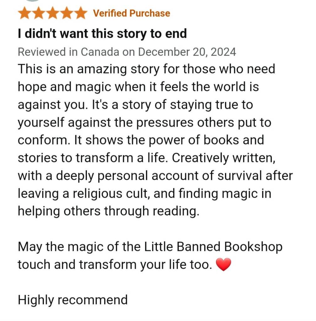 The response has been truly wonderful. A writer and teacher I admire listed Care and Feeding of Your Little Banned Bookshop as his #1 for 2024, I’ve had a few cult survivors reach out (this meant the world to me), and more than a few private messages from people who were touched by it.