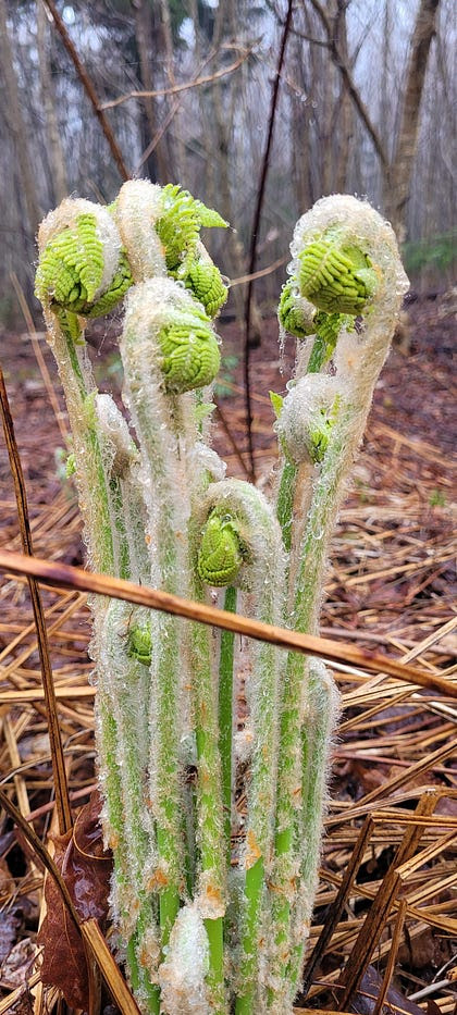 As they grow, they huddle together, a tightknit little fern family. Encouraging each other, no doubt, as they gather their bravest thoughts and slowly unfurl.