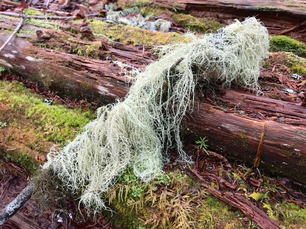I don’t want to leave you without anything to look at, so here’s a photo of what’s probably a bit of old man’s beard moss sitting atop a rotting log and definitely not some sort of lichen-beast crawling home to its forest lair.